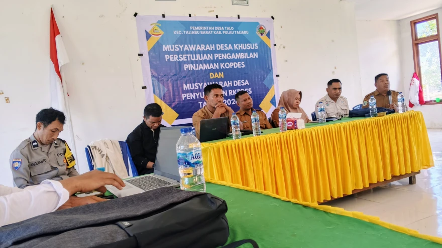 Talo, 14 Oktober 2025 - Pemerintah Desa Talo, Kecamatan Taliabu Barat, Kabupaten Pulau Taliabu, telah melaksanakan dua agenda penting pembangunan secara beruntun, yakni Musyawarah Desa Khusus (Musdesus) untuk persetujuan dukungan pengembalian pinjaman Koperasi Desa Merah Putih (KDMP) dan dilanjutkan dengan Musyawarah Desa (Musdes) Penyusunan Rencana Kerja Pemerintah Desa (RKPDes) Tahun Anggaran 2026.